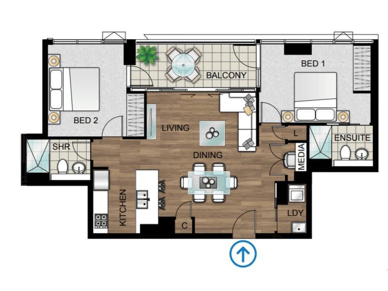 Near new 2 bed + study apartment is fully furnished with stylish modern furniture and positioned on the 11th floor of Meriton’s landmark Lighthouse building with on-site building management.